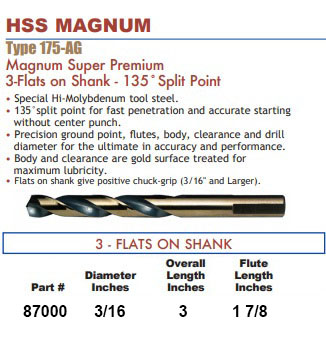 87000 3/16 H.S. JOBBER DRILL 18RDJO